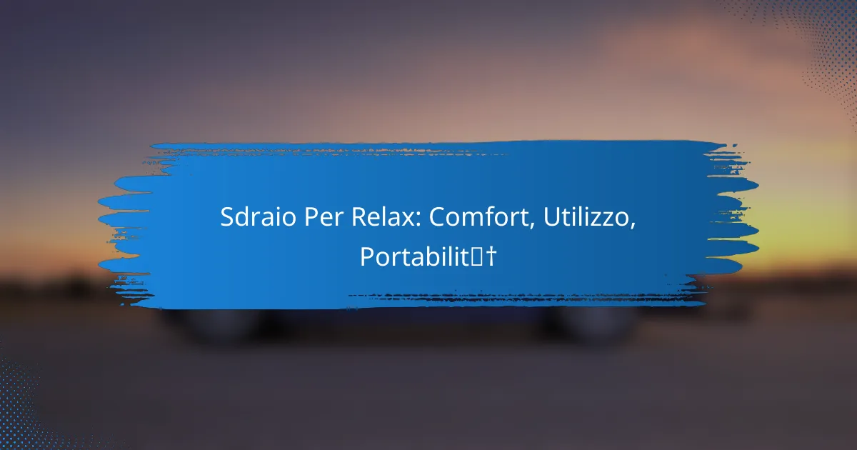 Le sdraio per relax offrono diverse opzioni di portabilità, rendendole facili da trasportare e utilizzare in vari contesti. Le caratteristiche principali da considerare includono il peso, la possibilità di piegatura e gli accessori disponibili per il trasporto.